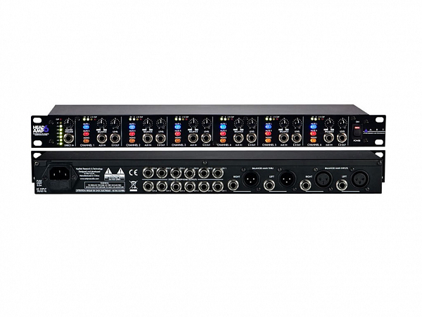 O HeadAmp6 é um amplificador de fone de ouvido estéreo de seis canais cheio de recursos que inclui seis entradas auxiliares para permitir separar "mais-me" misturas em cada canal de fone de ouvido. Cada canal de saída tem uma dupla função de Controle Patrimonial que irá deslocar entre Esquerda e Direita entrada do ônibus sinal principal, ou variar o mix entre o ônibus principal sinal estéreo e entrada auxiliar para que respectivo canal. Cada canal de saída inclui uma frontal e duas painel traseiro estéreo 1/4-inch TRS cabeça-de telefone para facilidade de instalação e capacidade de correção rápida. Mono, Mute L e R para seleccionar os botões Mute e em cada canal escolher entre quatro modos de operação: 1) Stereo, 2) Mono Esquerda, 3) Mono Direita, Mono Ambos (Left & Right) para soluções de monitoramento versáteis 4). Controles de nível de saída independentes em cada canal personalizar níveis de monitoramento. As opções de entrada incluem XLR e 1/4-inch TRS entradas balanceadas com correspondência "thru" tomadas para colmatar várias unidades. Um painel frontal estéreo adicional 1/4-inch TRS Direto Em jack para uma rápida substituição remendo das entradas do painel traseiro está incluído para inserção rápida de qualquer fonte estéreo. Controle de volume principal define o nível principal de ônibus do sinal. Oito segmentos LED nível de precisão de medição no ônibus principal e indicadores de quatro segmentos em cada canal de saída fornecer feedback visual do nível de sinal em todos os pontos-chave.