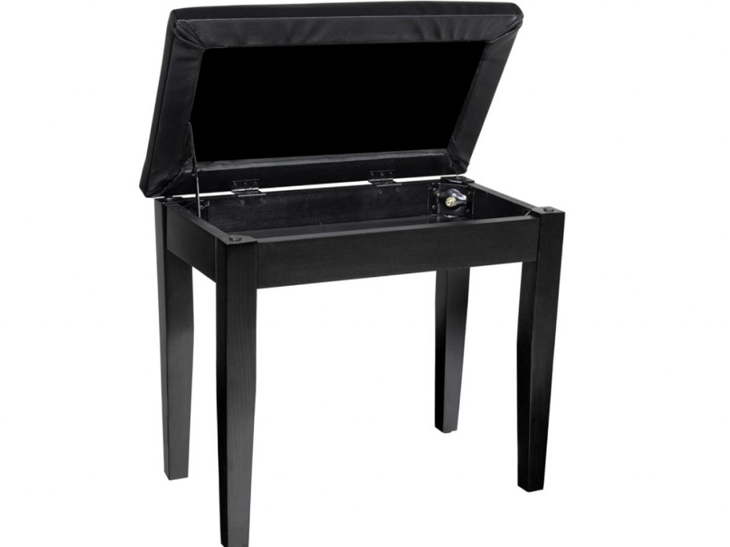 COMPARTIMENTO DE ARMAZENAMENTO: a parte superior do assento pode ser levantada, revelando um prático compartimento de armazenamento projetado para guardar partituras e acessórios.