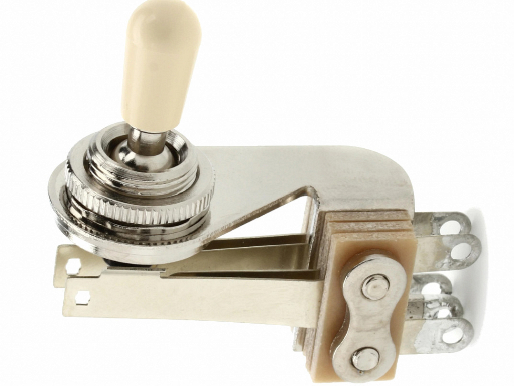 chave seletora original Gibson de substituição ou restauração tipo L (90°) que se adapta à maioria das guitarras Gibson de corpo fino, incluindo SG, Flying V, Explorer e Firebird. Vem com uma tampa de creme.