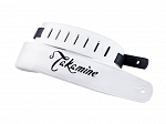 Correia Takamine. Fabricada em couro sintético, ela oferece um grande conforto para os ombros, por ser uma correia larga. Possui regulagem de altura. Disponível na cor Branca