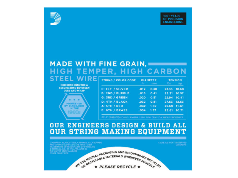 EXL145 é uma escolha popular para o rock e metal em que são necessárias calibres mais pesados. A terceira planície / G corda oferece mais flexibilidade do que os tradicionais cordas elétricas calibre 12. Optimizado para o ajuste para baixo! XL Nickel Wound, mais populares cordas da guitarra elétrica da D'Addario, são precisão ferida com aço nickelplated em um cuidadosamente elaborado, em forma hexagonal, núcleo de aço carbono de alta. O resultado, cordas com tom de longa duração, distintivo brilhante e excelente entonação, é ideal para a mais ampla variedade de guitarras e estilos musicais.