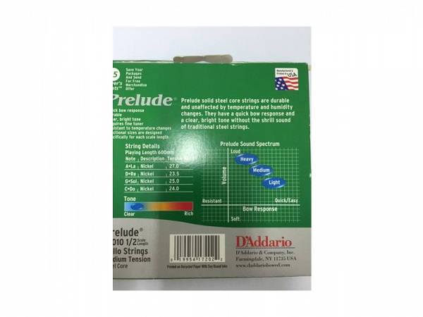 Prelude cordas de violoncelo são fabricados com um núcleo de aço sólido. Não afetado por mudanças de temperatura e umidade, eles têm excelente resposta arco. Cordas Prelude tem o som mais quente disponível em um design corda núcleo de aço sólido acessível. Prelude é escolha preferida do educador para cordas de estudantes devido à sua mistura única de tom quente, durabilidade e valor.