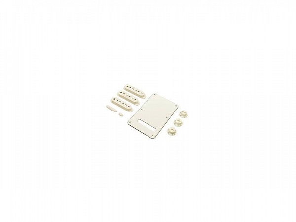 Kit para strato creme Chapa traseira, 3 knobs, 3 capinhas de captador, knob chave, knob alavanca.
