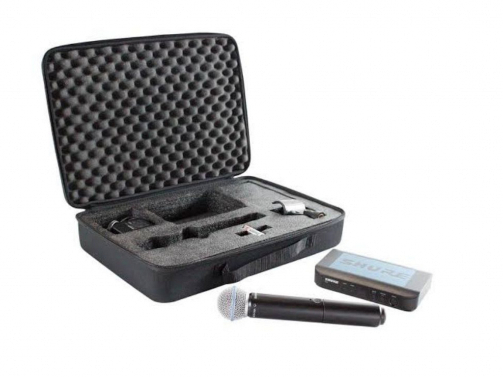 Inclui transmissor de mão BLX2/BETA58A, receptor BLX4, cachimbo de microfone, bag para transporte, fonte de energia, 2 pilhas AA, e guia do usuário.