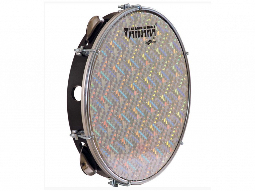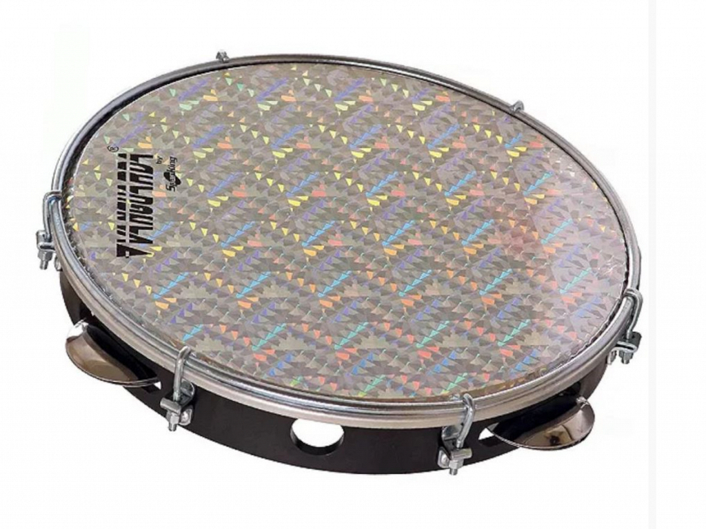 PANDEIRO SPANKING VANGUARDA 10 ABS PRETO PELE HOLOGRAFICA PRATA
