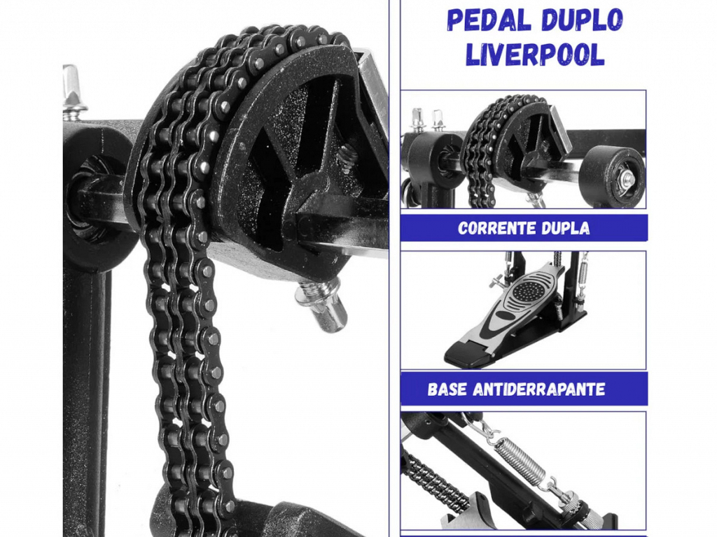 Pedal Duplo Liverpool Double Chain Drive com sistema de corrente dupla e batedor de 2 faces