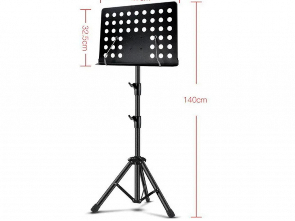 Pode ser utilizada para apoiar partituras, métodos, álbuns e alguns mais pesados como livros e pastas. Possui regulagem, chegando até a altura de 140cm.