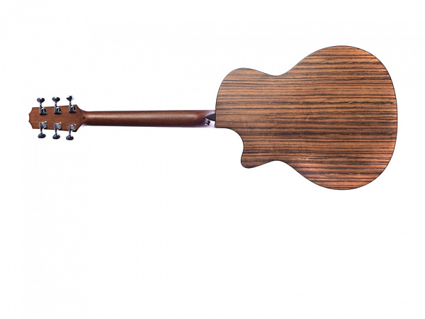 E esta versão super exclusiva foi feita a partir de uma madeira exótica chamada ovangkol. Da família do rosewood, o ovangkol semelhanças com seu parente próximo, incluindo um amplo espectro tonal que vai dos túmulos aos agudos. Mas também há diferenças, que no caso do ovangkol significa um tempo de reverberação dos médios e uma resposta mais dos agudos, lembrando um pouco o som dos instrumentos maiores em Koa. O que você precisa conhecer é o visual completo!!